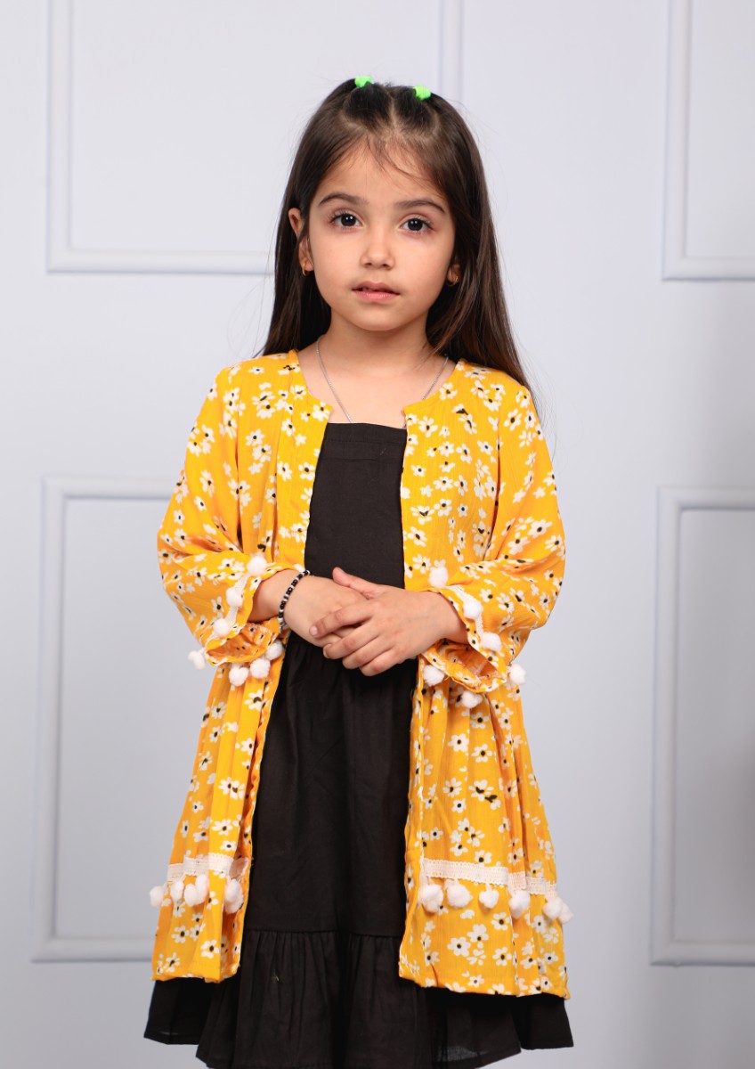 Brighten up her day with our Sunshine Bloom Frock ☀️🌼A cheerful yellow floral shrug paired with a comfy...